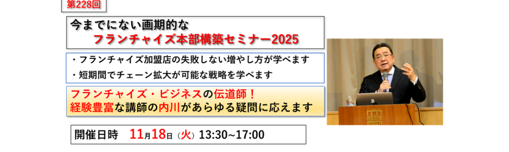 60年の歴史があるフランチャイズ業界の黎明期から現在まで継続的に成長してきた「光」の面がある一方、残念ながらフランチャイズの「闇」の面も存在しており、これら双方を弊研究所は熟知しており、その経験値から、こうしたトラブルを起こさない、リスクの少ない正しいフランチャイズ・ビジネスの始め方をみなさんにお伝えします。